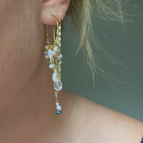 A beautiful set that combines our water drop earrings and dainty threads, a match made in heaven. Combining natural appatite, pearls and dainty chain these earrings are both lightweight and intended to make a statement everyday.